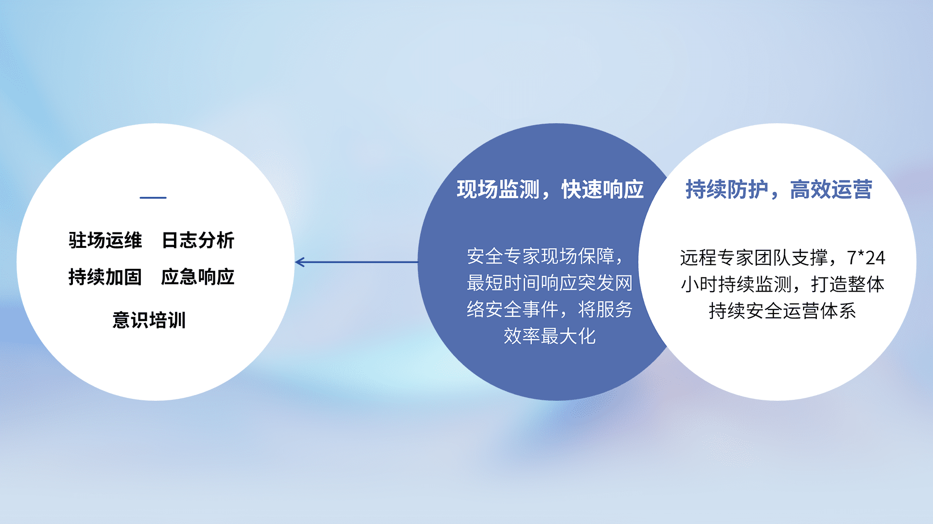 7X24小时持续监测安全事件,保持安全策略有效性,降低资产脆弱性风险,,,精准拦截黑客攻击,,,减少被黑客利用的机会,,,,第一时间遏制,,降低损失。。。。